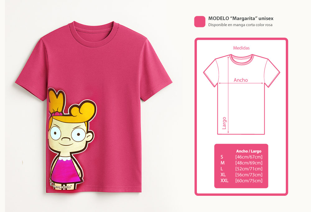 Margarita, la niña más sincera, más tremenda y más repelente de toda la historia, aterriza ahora en tu armario en formato rosa explosivo para que presumas de humor irreverente allá por donde vayas.