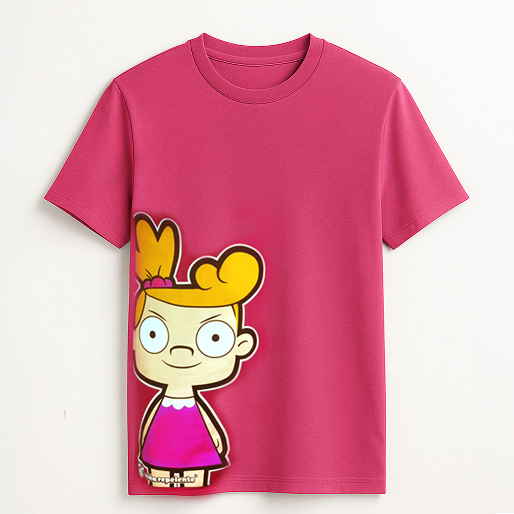La camiseta más icónica de Niña Repelente: Margarita en su versión clásica, la niña más malhablada, caótica y maravillosa del universo. Rosa, atrevida y 100% algodón. Solo para auténticos fans capaces de sobrevivir a sus ocurrencias.